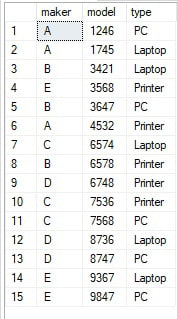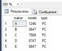 С помощью оператора SELECT был выполнен запрос, где в таблице найдены производители, выпускающие компьютеры. Выберите правильный запрос для вывода результата, который представлен на рисунке ниже