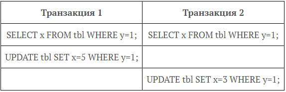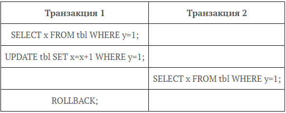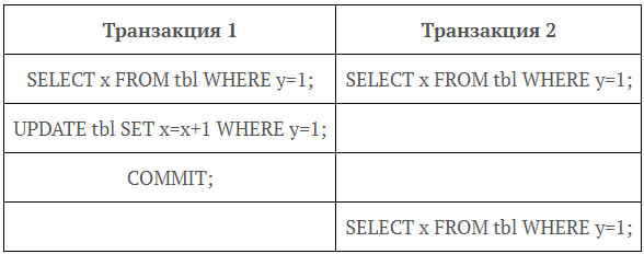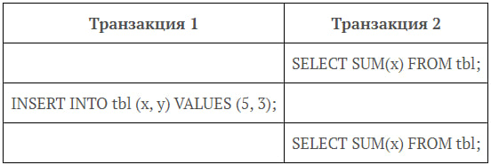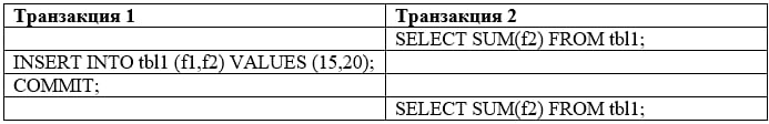 Представим, что в транзакции 2 выполняется SQL-оператор, использующий все значения поля f2. Затем в транзакции 1 выполняется вставка новой строки, приводящая к тому, что повторное выполнение SQL-оператора в транзакции 2 выдаст другой результат.