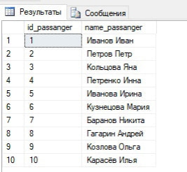 С помощью какого оператора SQL были выведены все имена пассажиров: