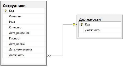 Записи должностей в таблице «Должность» уникальны, так как нет смысла повторно создавать имеющуюся запись. Записи в таблице «Сотрудники» также уникальны, но несколько различных сотрудников могут находиться на одинаковой должностной позиции. Какая связь понадобится для решения данной проблемы?