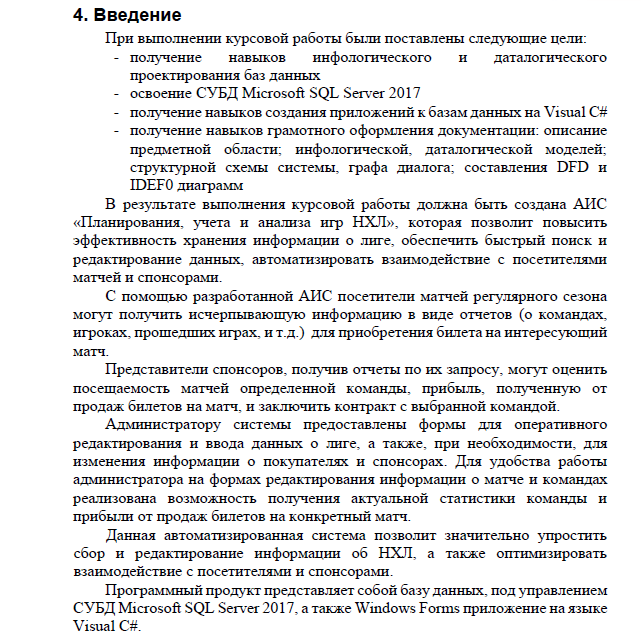 Курсовая работа: АИС "Планирование, учет и анализ игр НХЛ"