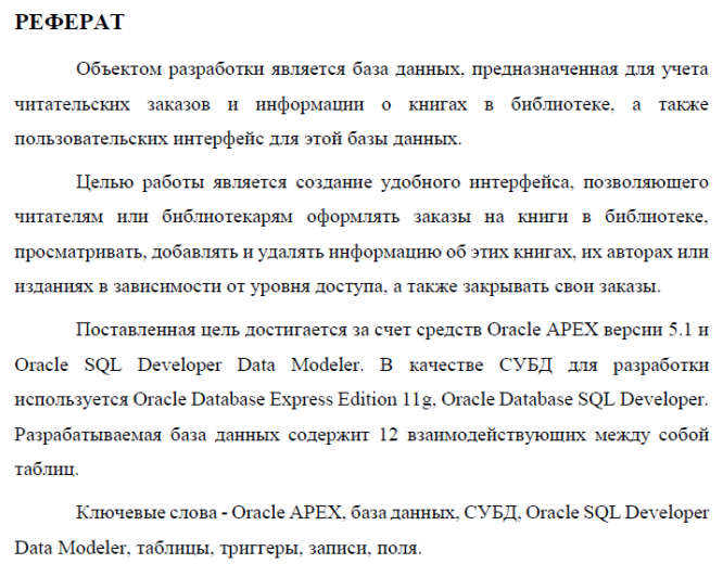 Характеристики курсовой работы