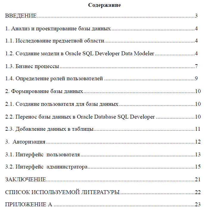 Характеристики курсовой работы