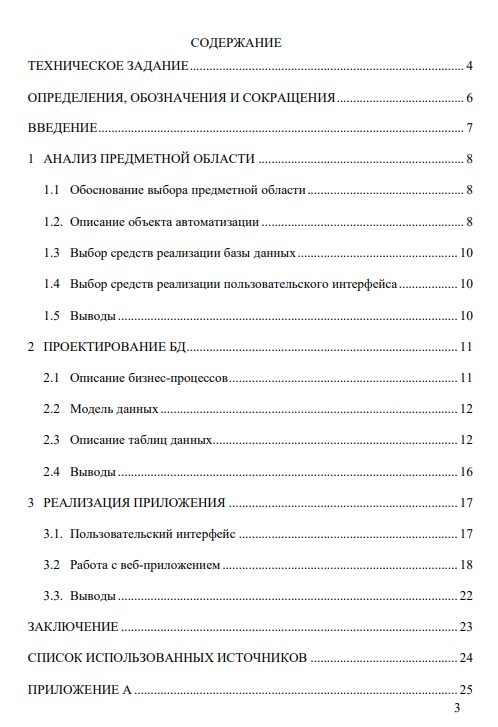 Характеристики курсовой работы