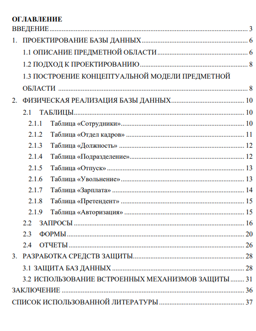 Курсовая работа: Разработка защищенной базы данных для отдела кадров