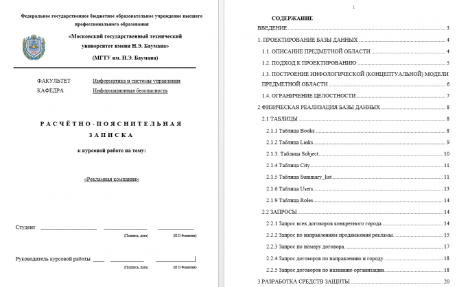 Для студентов МГТУ им. Н.Э.Баумана по предмету Базы данныхБаза данных "Рекламная компания"База данных "Рекламная компания"