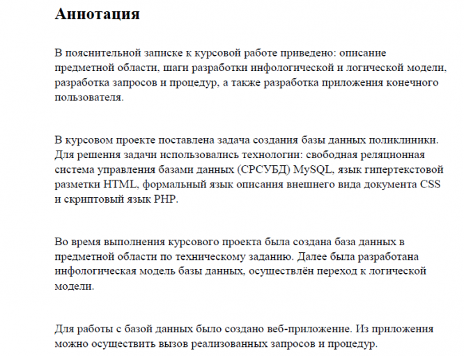 Главная » Учебные материалы » Базы данных » Курсовые работы » МГТУ им. Н.Э.Баумана » 4 семестр » Разработка информационной системы "Поликлиника"