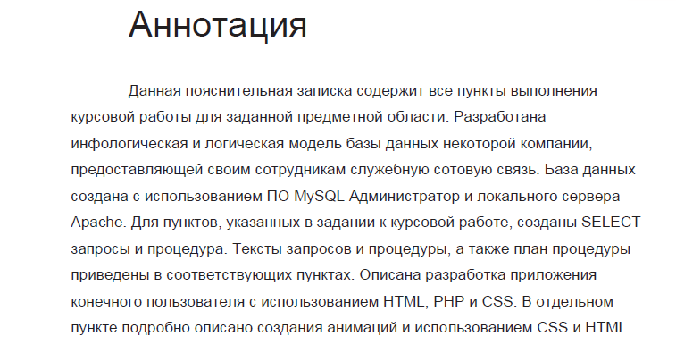 Вы можете использовать курсовую работу для примера, а также можете ссылаться на неё в своей работе. Авторство принадлежит автору работы, поэтому запрещено копировать текст из этой работы для любой публикации, в том числе в свою курсовую работу в учебном заведении, без правильно оформленной ссылки. Читайте как правильно публиковать ссылки в своей работе.