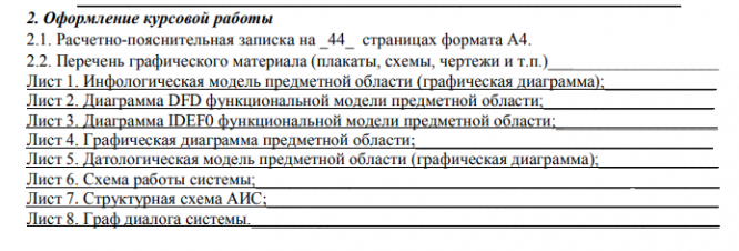 1.2. В ходе курсового проектирования разработать техническое задание, функциональную, инфологическую и датологическую модели предметной области,_____ интерфейс пользователя, структурную схему, схему работы системы, граф диалога,_____ методику испытаний и руководство пользователя.