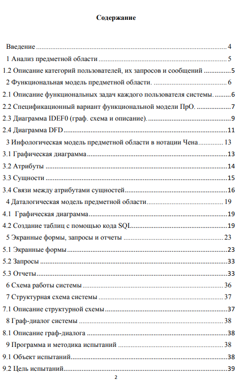 Характеристики курсовой работы