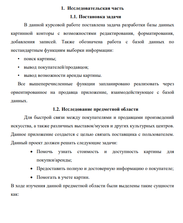 Целью данной курсовой работы является проектирование и реализация базы данных для предметной области «Картинное агентство». Для её достижения необходимо выполнить поставленные задачи: • Проанализировать предметную область; • Разработать концептуальную модель предметной области: • Создать структуру базы данных; • Ознакомиться с современными способами реализации БД; • Реализовать приложение, взаимодействующее с БД