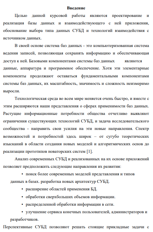 Целью данной курсовой работы являются проектирование и реализация базы данных и взаимодействующего с ней приложения, обоснование выбора типа данных СУБД и технологий взаимодействия с источником данных. В своей основе система баз данных - это компьютеризованная система ведения записей, позволяющая сохранять информацию и обеспечивающая доступ к ней. Базовыми компонентами системы баз данных являются данные, аппаратура и программное обеспечение. Хотя эти элементарные компоненты продолжают оставаться фундаментальными компонентами системы баз данных, их масштабность, значимость и сложность неизмеримо выросли.