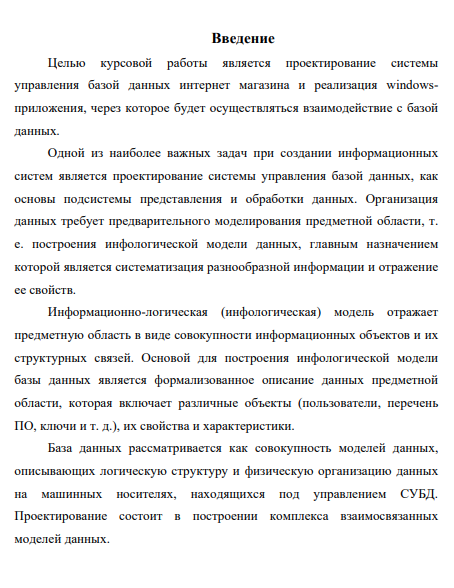 Целью курсовой работы является проектирование системы управления базой данных интернет магазина и реализация windowsприложения, через которое будет осуществляться взаимодействие с базой данных.