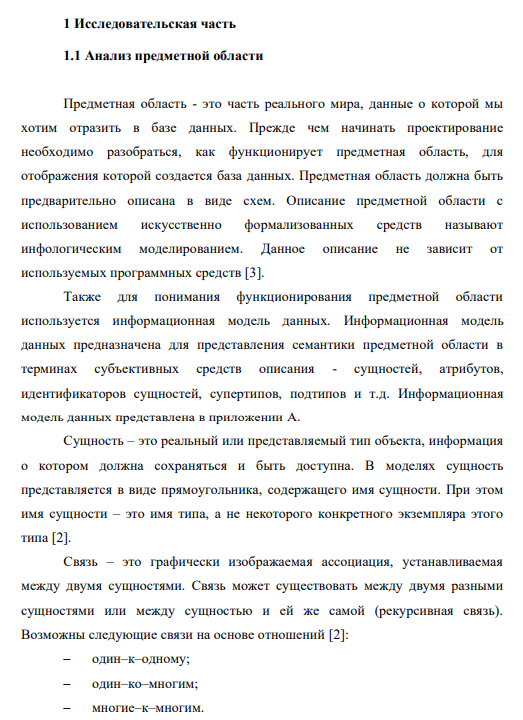 Характеристики курсовой работы