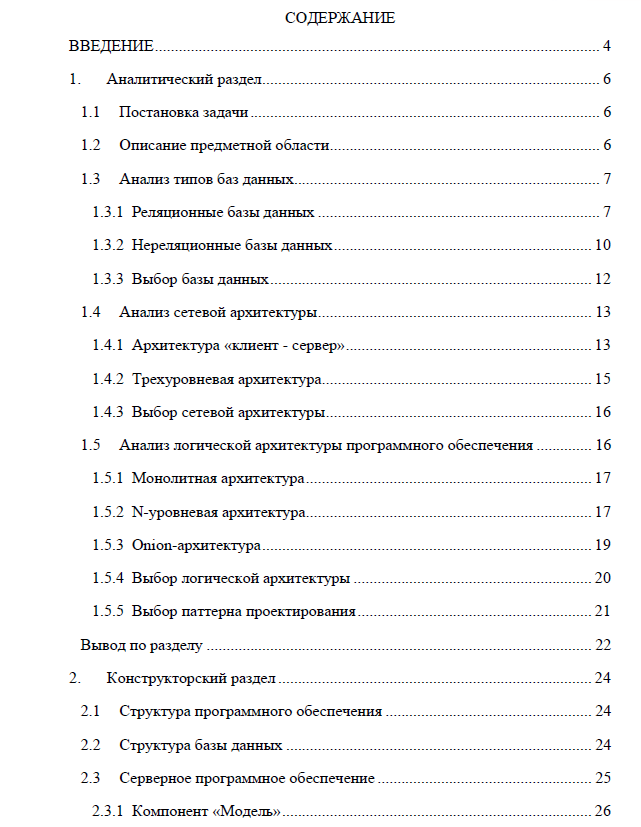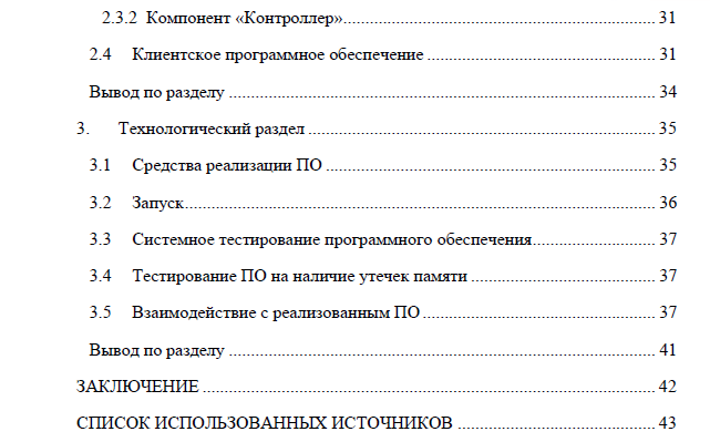 Характеристики курсовой работы