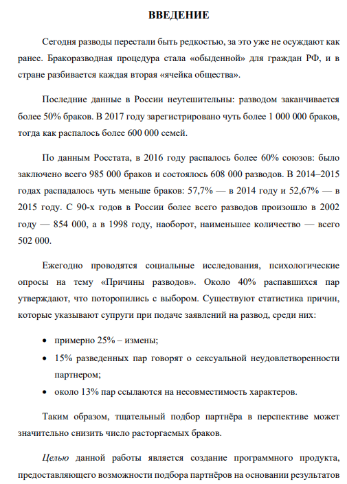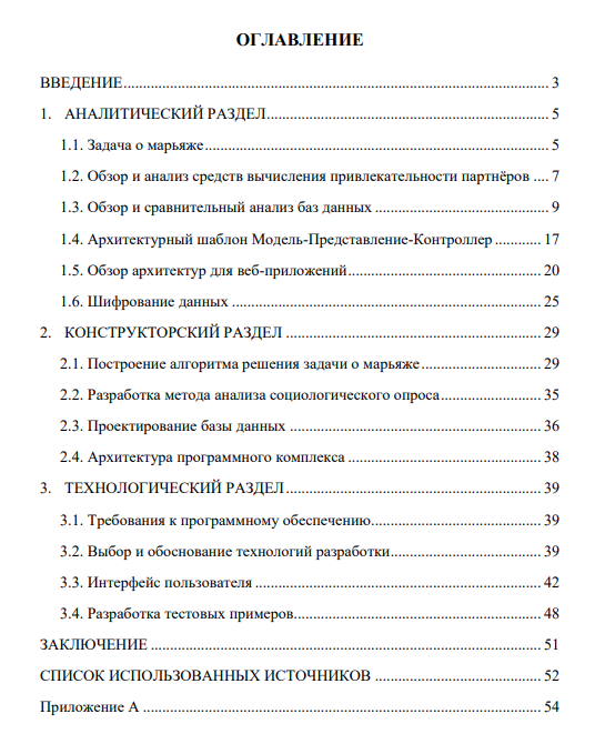 Целью данной работы является создание программного продукта, предоставляющего возможности подбора партнёров на основании результатов 4 решения задачи об устойчивом паросочетании, также известной как задача о марьяже. Для достижения поставленной цели необходимо выполнить следующее: создать базу данных для хранения информации о пользователях сервиса для знакомств; определить модели данных, подходящих к поставленной задаче; выбрать и обосновать технологии реализации; разработать клиентское приложение для операционной системы Android, осуществляющее доступ к базе данных и операции над данным, выводящее результат подбора пар с точки зрения решения задачи о марьяже.