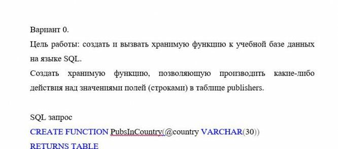 Цель работы: создать и вызвать хранимую функцию к учебной базе данных на языке SQL.