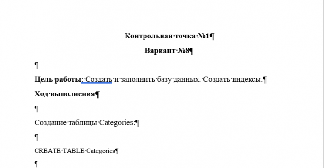 ДЗ: Контрольная точка №1 Вариант №8 Цель работы: Создать и заполнить базу данных. Создать индексы. вариант вариант 8