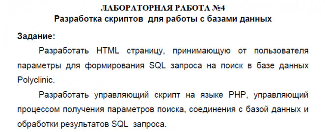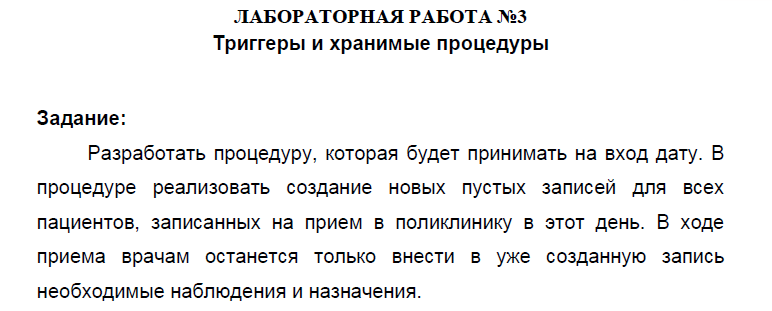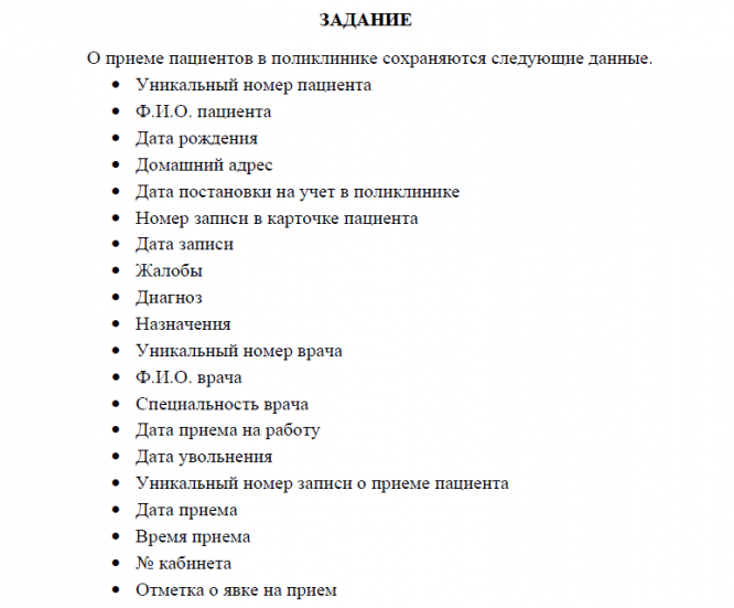 Главная » Учебные материалы » Базы данных » Лабораторные работы » МГТУ им. Н.Э.Баумана » 4 семестр » Отчет по лабораторным работам "Прием пациентов в поликлинике" (вариант №37)