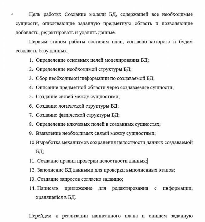 Первым этапом работы составим план, согласно которого и будем создавать базу данных.