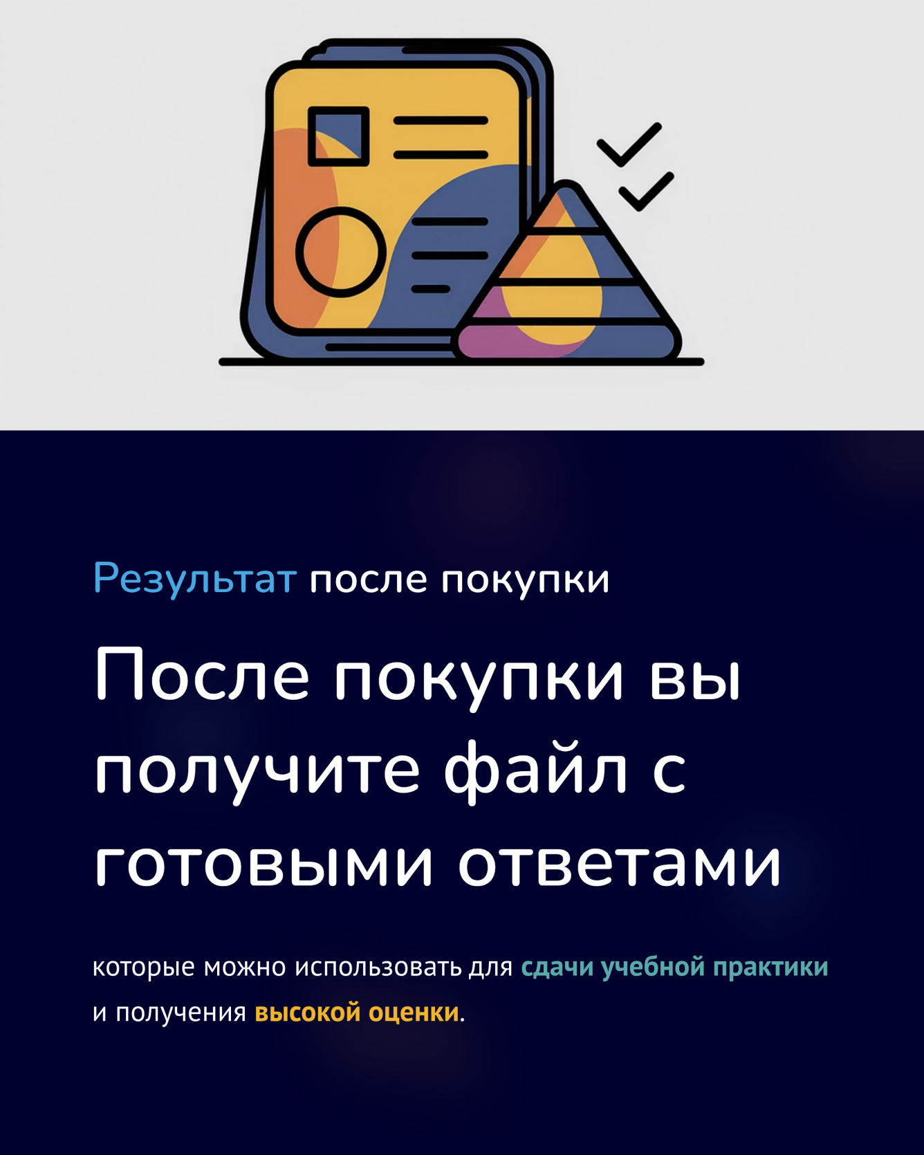 После покупки вы получите файл с готовыми ответами, которые можно использовать для сдачи учебной практики и получения высокой оценки.