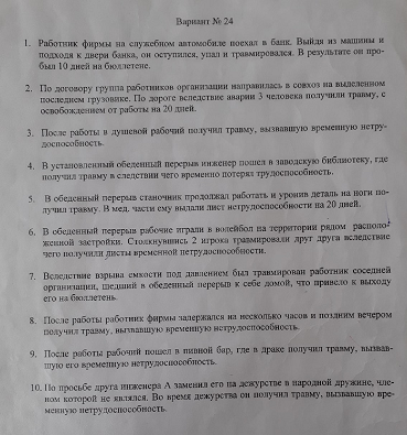 Ответы к контрольной работе: Вариант 24 - РК №1 - Несчастные случаи на производстве вариант 24