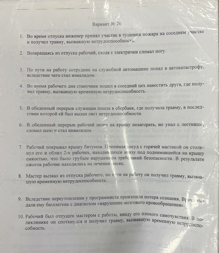 Ответы к заданиям: Несчастные случаи на производстве вариант 20