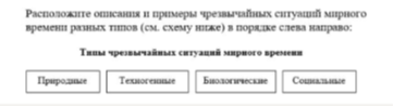 … – это одна из основных форм человеческой деятельности, характеристиками которой являются наличие конкретной цели, наличие этапов (от простого к сложному), интерактивность и продолжительность в течение всей жизни человека, начиная с рождения 8. … – это одновременное прогрессирующее во времени и пространстве в пределах определенного региона распространение инфекционной болезни среди большого числа одного или многих видов сельскохозяйственных животных, значительно превышающее обычно регистрируемый на данной территории уровень заболеваемости 9. … – это система мероприятий по подготовке к защите и по защите населения, материальных и культурных ценностей на территории РФ от опасностей, возникающих при военных конфликтах или вследствие этих конфликтов, а также при чрезвычайных ситуациях природного и техногенного характера 10.