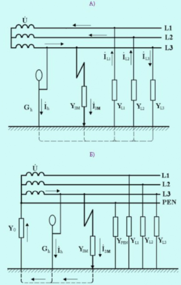 При прикосновении к фазному проводнику в сети IT при аварийном режиме работы сети: