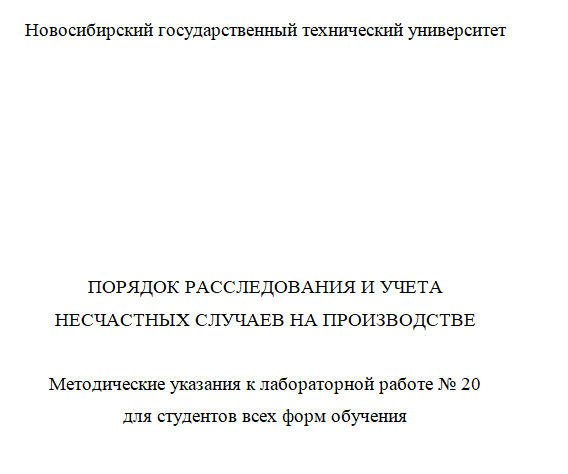 Для студентов НГТУ по предмету Безопасность жизнедеятельности (БЖД и ГРОБ или ОБЖ)Методические указания к Лабораторной работе №20 - Порядок расследования и учета несчастных случаев на производствеМетодические указания к Лабораторной работе №20 - Порядок расследования и учета несчастных случаев на производстве