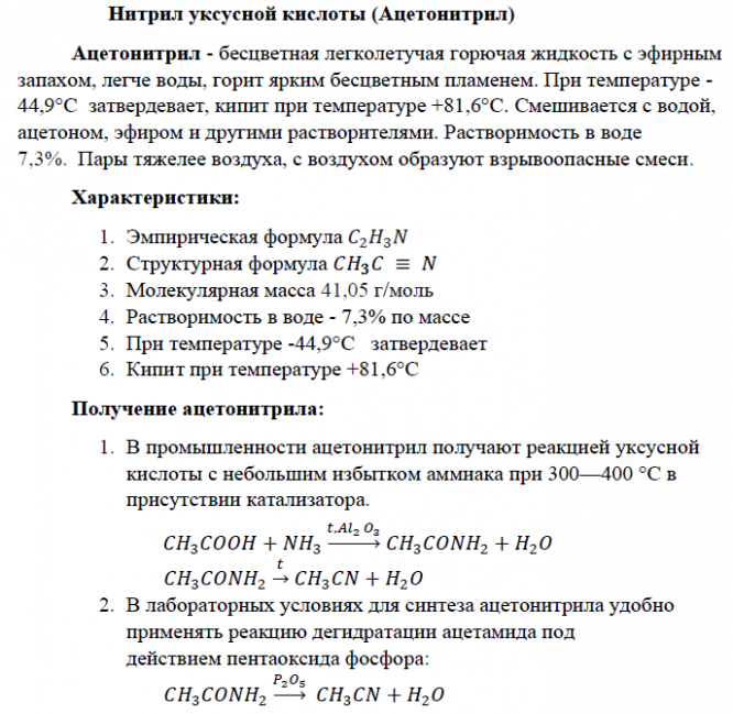 ДЗ: Домашнее задание №2 "Характеристика нитрила уксусной кислоты"