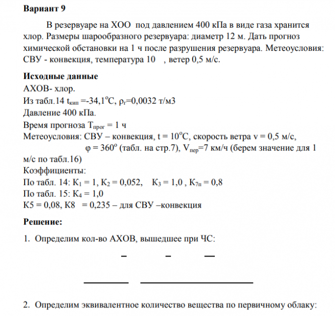Домашнее задани (Вариант №9) - Прогнозирование обстановки при авариях на химически опасных объектах.pdf