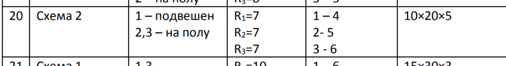 Источник шума 1 подвешен, а 2 и 3 находятся на полу. R1=7, R2=7, R3=7. Размеры помещения 10x20x5. Уровни звуковой мощности источников шума:
