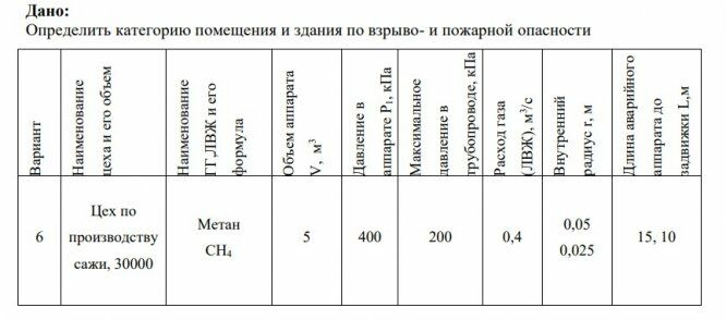 ДЗ: Вариант 6 - ДЗ№2 - Определение категории помещения и здания по взрыво- и пожарной опасности. вариант 6