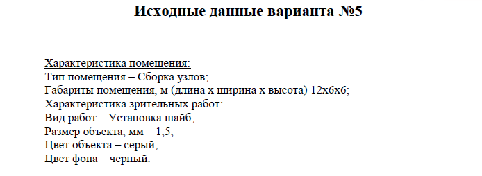 ДЗ 2: Расчет искусственного освещения вариант 5