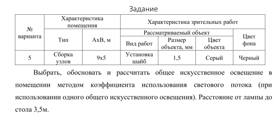 ДЗ 2: Расчет искусственного освещения, Вариант 5