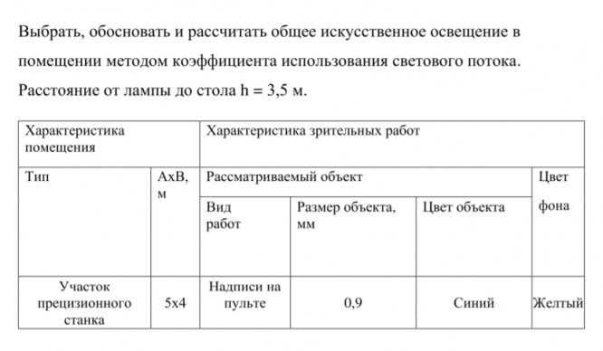 ДЗ 2: Расчет искусственного освещения, Вариант 16