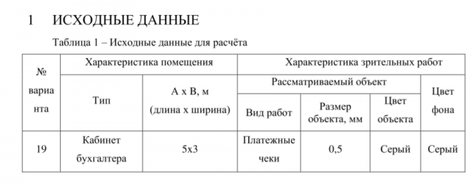 ДЗ 2: Расчет искусственного освещения, Вариант 19 вариант 19