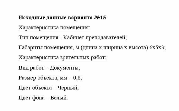 2022г Вариант 15 - ДЗ - Искусственное освещение