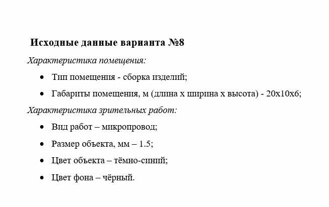 2022г Вариант 8 - ДЗ - Искусственное освещение