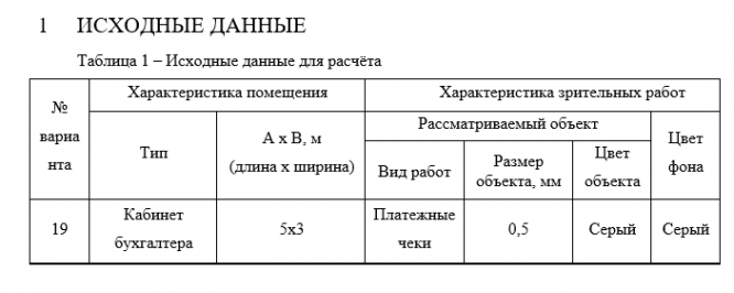 ДЗ 2: Расчет искусственного освещения вариант 19