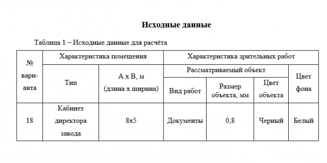 ДЗ 2: Расчет искусственного освещения вариант 18 вариант 18