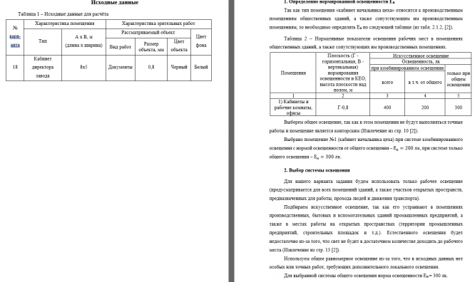 ДЗ 2: Расчет искусственного освещения вариант 18