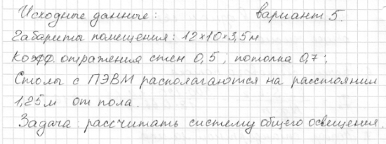 ДЗ 2: Расчет искусственного освещения вариант 5