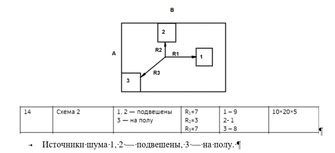 указанном расположении расчетной точки относительно источников шума, габаритных размерах