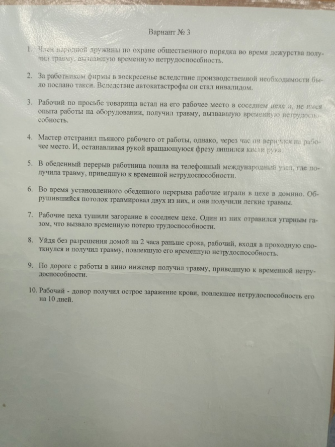 Несчастные случаи БЖД Вариант 3