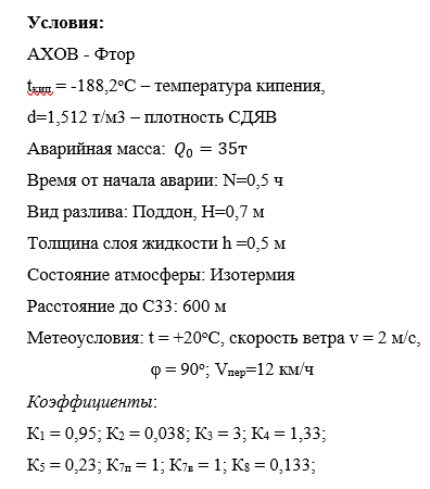 ДЗ дз2: Прогнозирование масштабов АХОВ при авариях на химически опасных объектах вариант 11