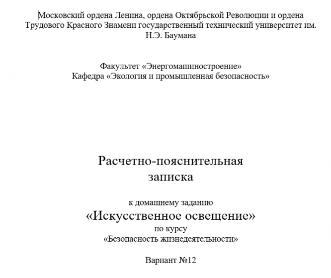 Для студентов МГТУ им. Н.Э.Баумана по предмету Безопасность жизнедеятельности (БЖД и ГРОБ или ОБЖ)Искусственное освещениеИскусственное освещение