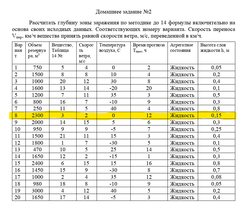 ДЗ 2: Расчет глубины зоны заражения вариант 8