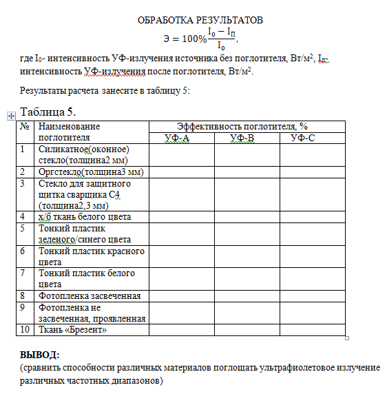 Лабораторная работа 10: Исследование методов защиты от ультрафиолетового излучения вариант 1